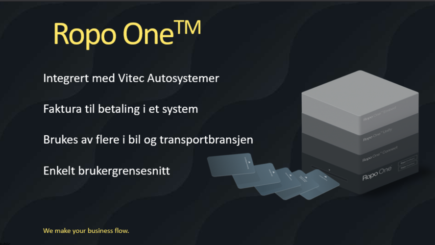 Vår integrerte løsning kombinerer Ropo One™ med Vitec Autosystemer, og gir dere en sømløs opplevelse for fakturahåndtering og betalingsprosesser. Dette systemet er spesielt utviklet for bil- og transportbransjen og tilbyr følgende fordeler:
